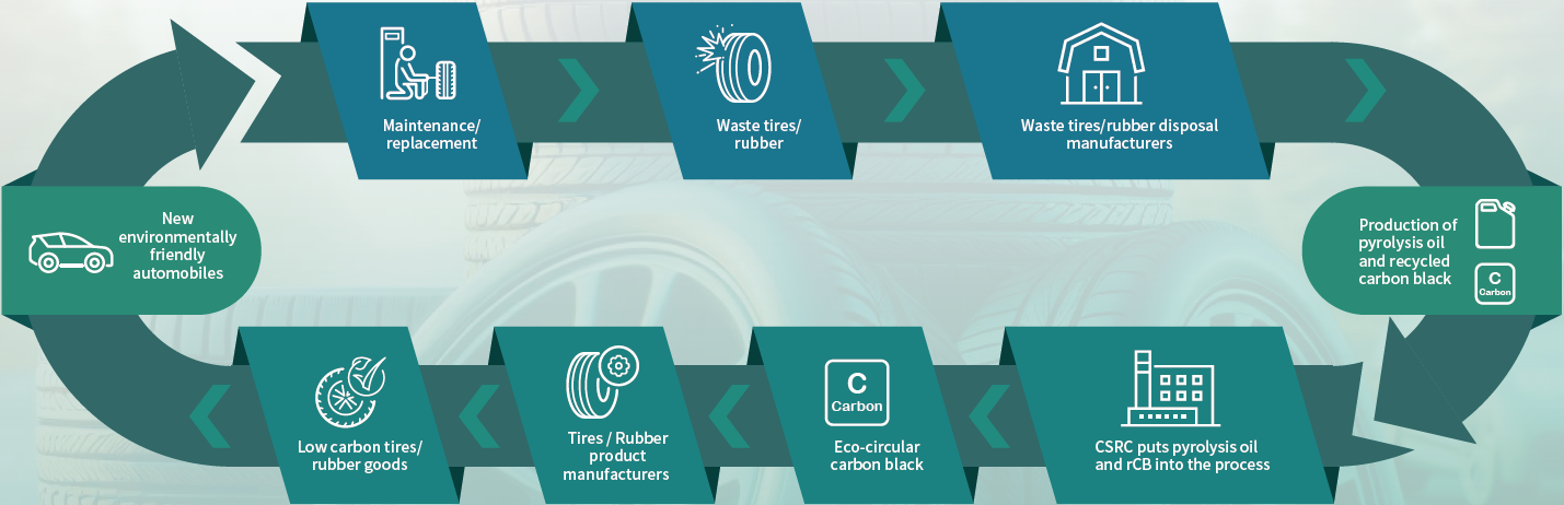 Leading multinational automobile and parts manufacturers have identified sustainability and the use of regenerative materials as core development strategies. As carbon black is essential in tire manufacturing, it is a key part of the circular value chain and crucial for achieving supply chain net-zero emissions. CSRC aims to be a pioneer in circular economy and net-zero transformation by integrating circularity into our operations. Through partnerships with pyrolysis recyclers of end-of-life tires, we reuse recycled carbon black and recycled pyrolysis oil in production. Using proprietary technologies, we refine carbon black formulations to create Eco-circular carbon black. This closed-loop system supports sustainability and meets customer demands for greener materials. In 2024, our Ponca city and Sunray plants in the U.S. received ISCC PLUS certification under this model.