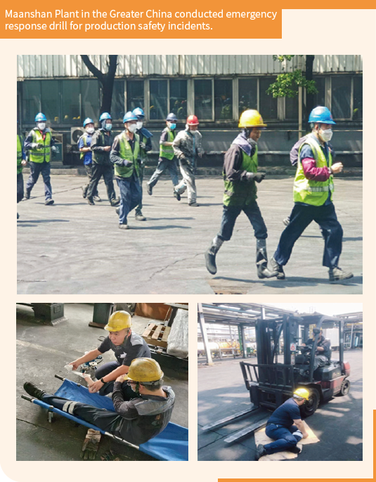 CSRC conducts annual emergency response drill plans in addition to regular fire drills at each of its plants. This is aimed at making personnel familiar with the process flow through continuous training.