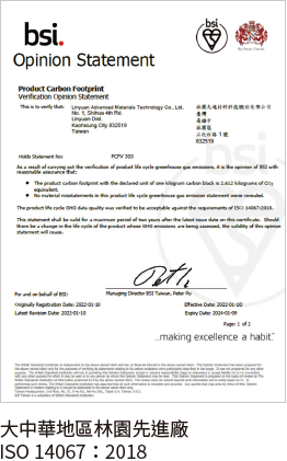 因應國際客戶對產品環保及減碳的重視,國際中橡積極開發低碳及環境友善碳黑新品級產品,大中華地區林園先進廠已於 2022 年取得碳黑碳足跡認證,協助客戶終端符合綠色需求。