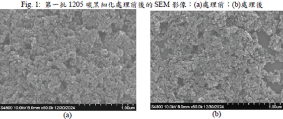 2024 年度成功開發出單壁奈米碳管 SWCNT。在掃描式電子顯微鏡 (SEM) 下可觀察到密集成束的碳管;在穿透式電子顯微鏡 (TEM) 下則可確認單層的碳管結構,且長徑比高的優勢。而且,碳管品質優良,在拉曼分析下的 IG/ID 比>30。同時,也建立了純化碳管和碳管懸浮液的製程,產量已從實驗室等級放大到試量產線等級。