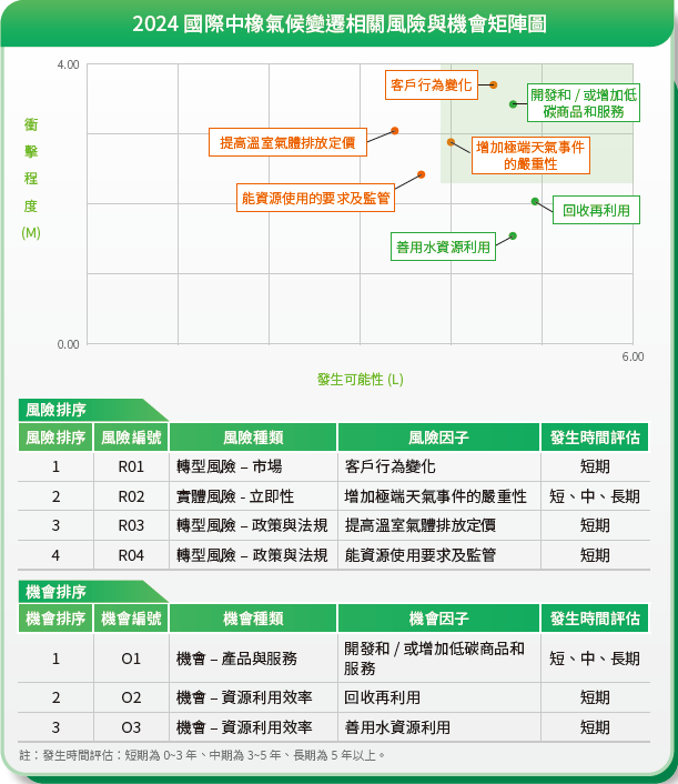 2024 年國際中橡氣候變遷相關風險與機會矩陣圖