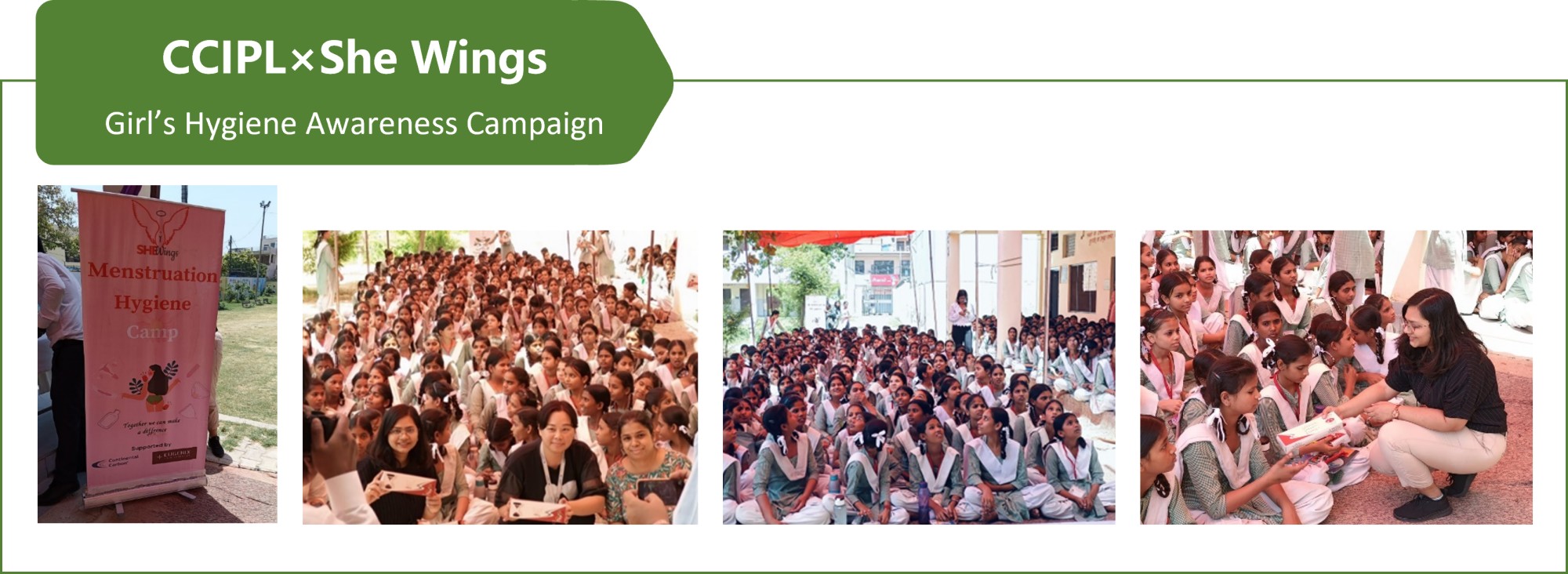 To foster hygiene awareness, proper body care concepts, and knowledge of feminine hygiene products among female students, the CCIPL has long supported the NGO "She Wings." In collaboration with She Wings, CCIPL has organized awareness programs at local public girls’ schools. In addition to formal educational sessions, female employees from the CCIPL engage in interactive discussions with students. After each session, hygiene products are provided to all participants, with a goal of educating 1,000 girls on proper feminine hygiene practices.
